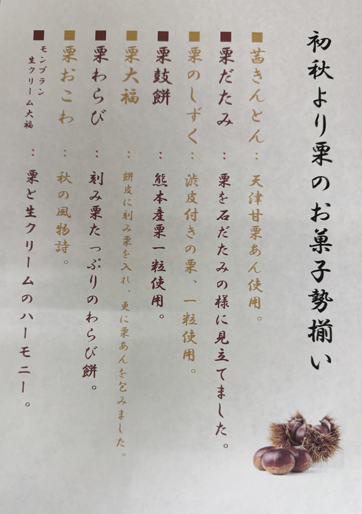 秋といえば栗のお菓子ですね。