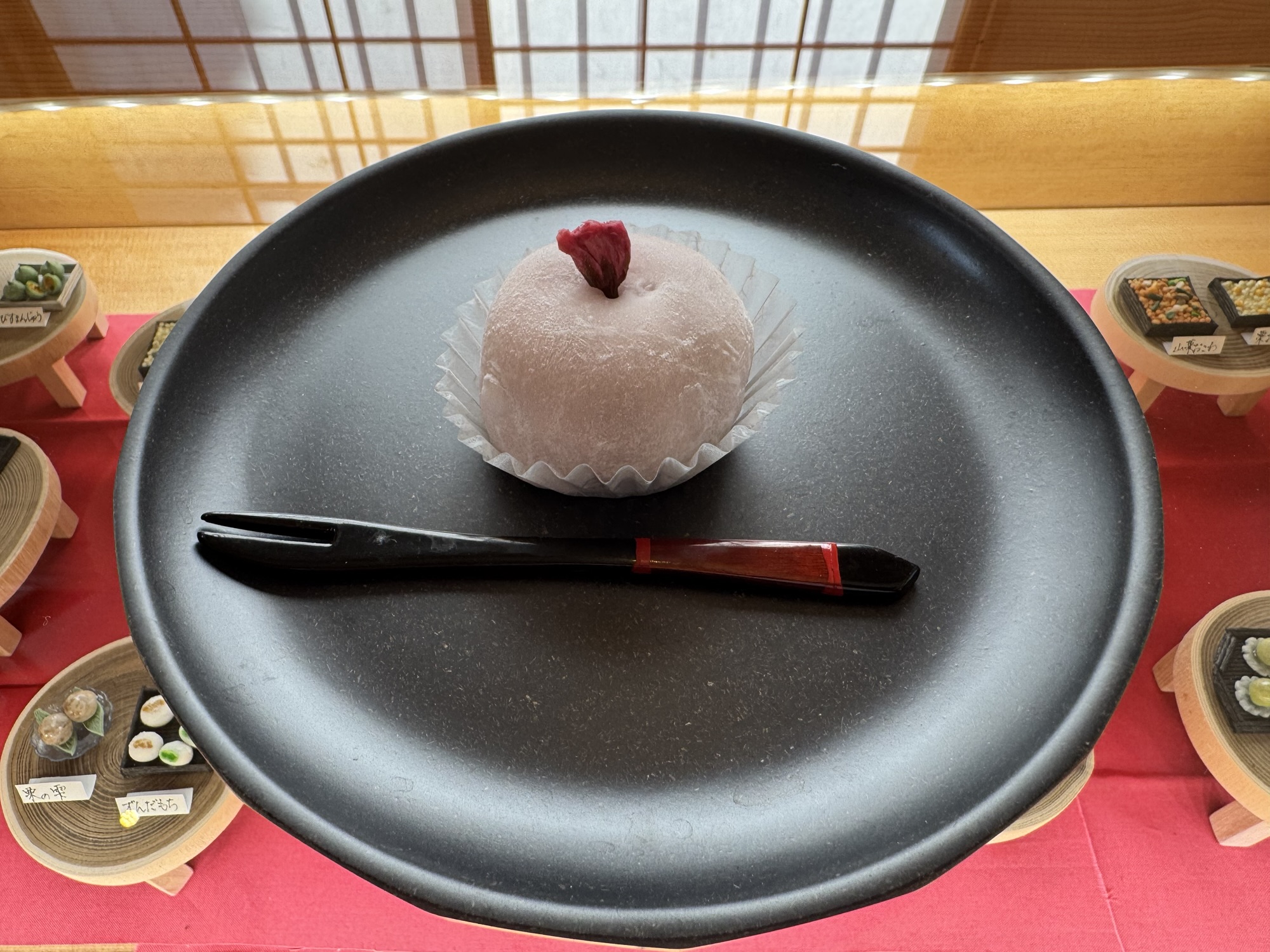 ほんのり薄紅色の少しお塩の効いたお餅。生地の中は、さっぱりしたこし餡になっております。あんこが引けた後味が、ほのかにさくらの香りが致します。